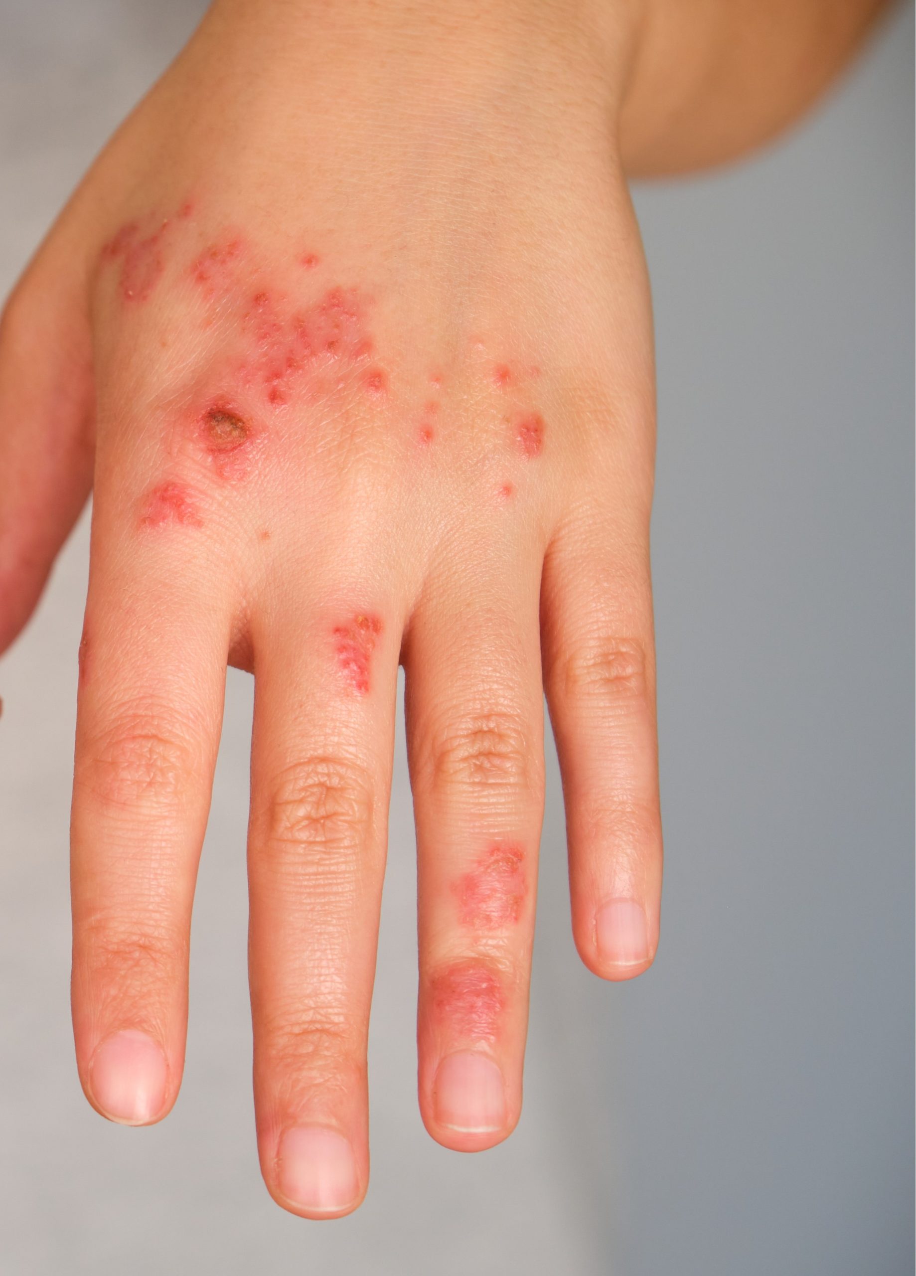 Eczema, also known as Atopic Dermatitis, is a chronic inflammatory skin condition that causes red, itchy, dry, and inflamed patches on the skin. It is commonly seen in children, but adults can also experience flare-ups triggered by allergies, irritants, climate changes, stress, or skin barrier weakness.